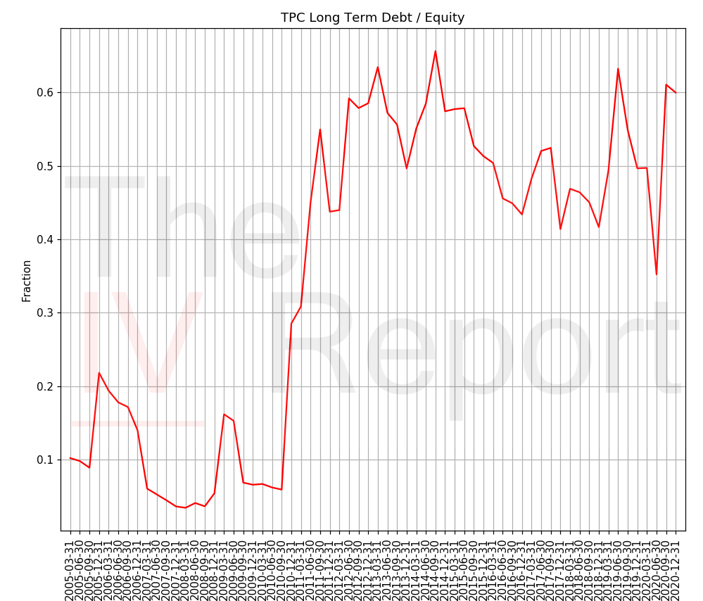 Worries: The only reservation I have here is that the long-term debt-to-equity ratio is climbing; see Figure 4. I do not like buying companies with large amounts of debt. Further, the book value trend for TPC is not as solid as I usually like. Things like that can keep me up at night before earnings reports. I will continue to monitor it for any surprises.
